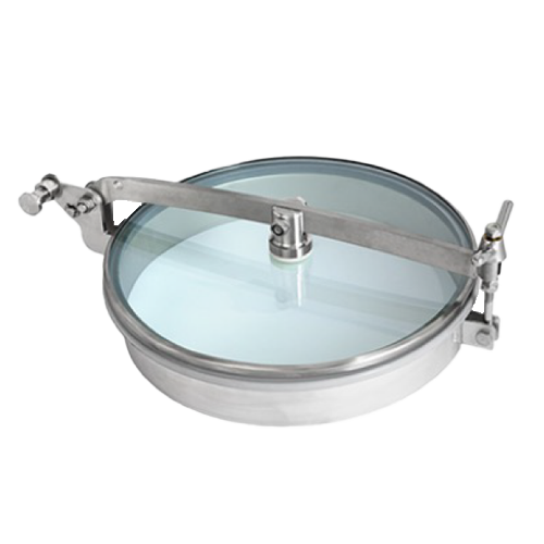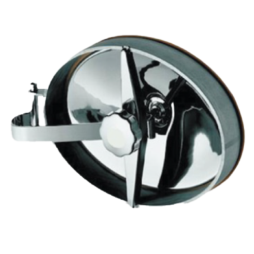 The Alfa Laval Type CG access tank cover is a round glass manway cover designed to securely seal openings on stainless steel tanks and containers used in various hygienic applications. These applications span a wide range of industries, including winemaking, brewing, beverage production, dairy processing, and food manufacturing. This versatile cover is specifically engineered to be positioned above the liquid level and serves a dual purpose: it can function as an inspection port or a sealable access point to the interior of the vessel for personnel. This feature streamlines the process of both visual and physical inspections, making them convenient and efficient.